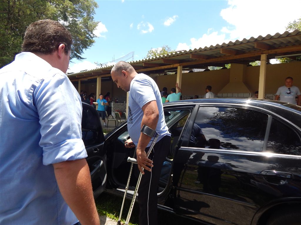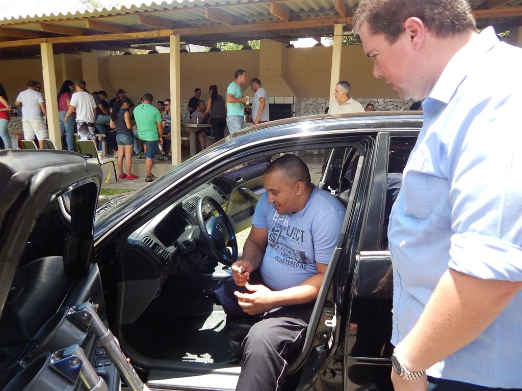 Entregamos o Projeto 008 - Um carro automático/adaptado ao Soldado Ananias durante almoço de final de ano da 4ª Cia/12ºBPM.