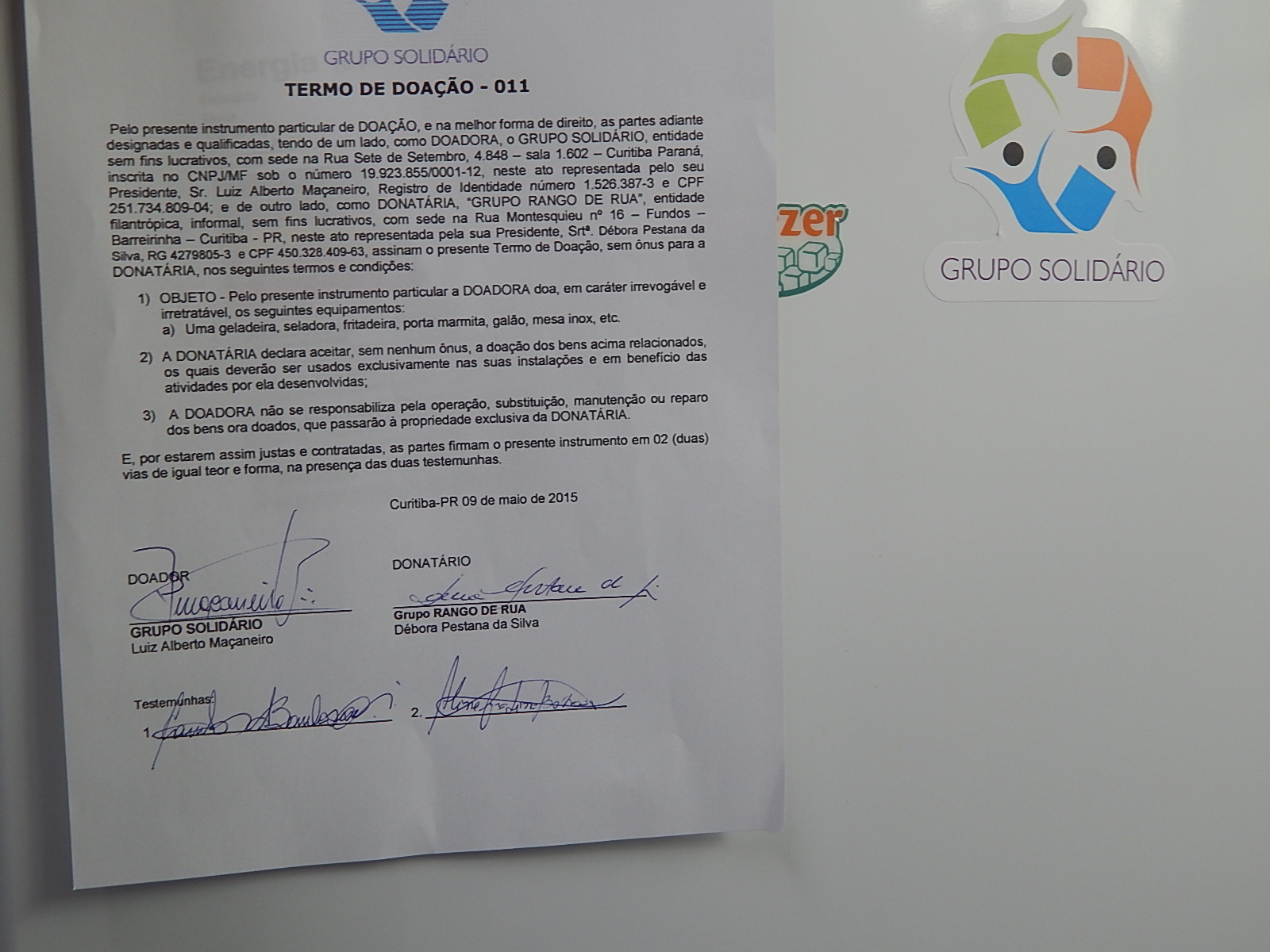 O Grupo Solidário teve a grande oportunidade de ajudar o grupo RANGO DE RUA www.facebook.com/RangoDeRua?fref=ts com a doação de equipamentos de cozinha (geladeira, seladora, fritadeira, porta marmita, galão, mesas inox etc) necessários para continuarem seu belíssimo trabalho semanal.