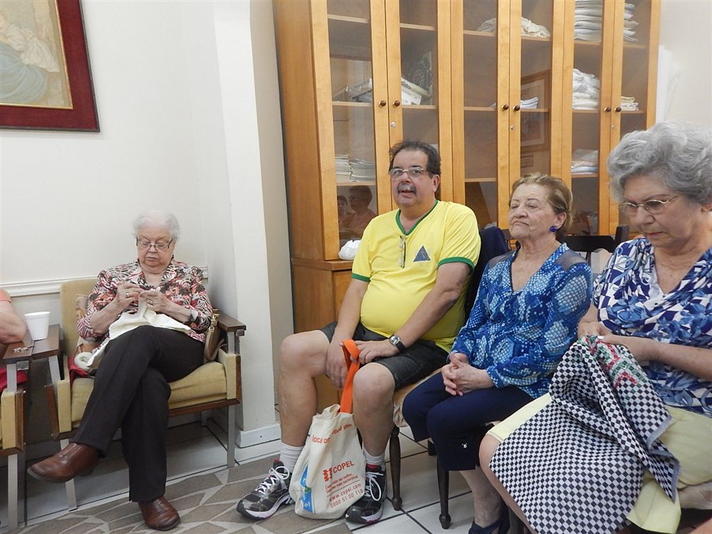 Estavam presentes 20 senhoras integrantes do Grupo Espírita, além dos 12 Solidários, que nos aguardaram com bolo e refrigerante em clima de festa pelo aniversário de uma delas.