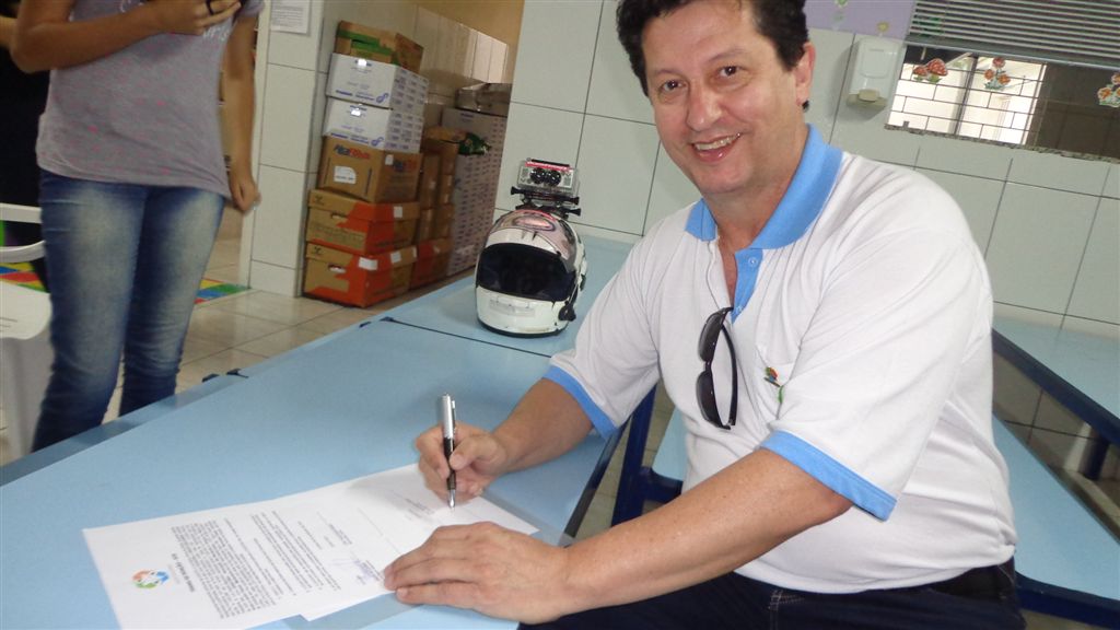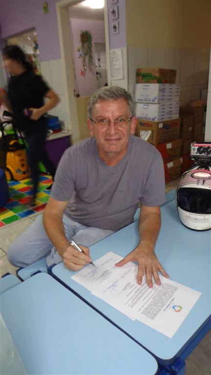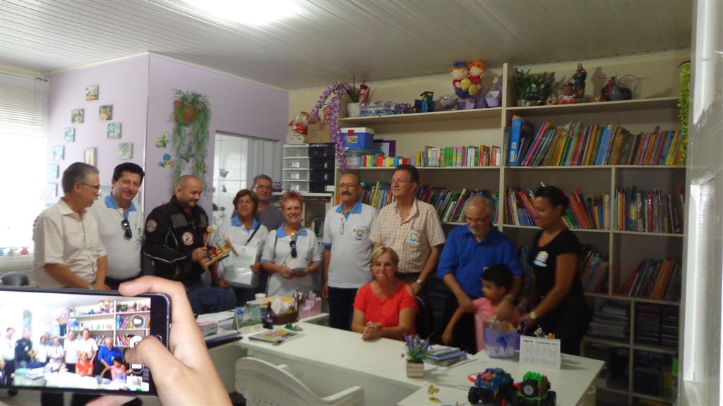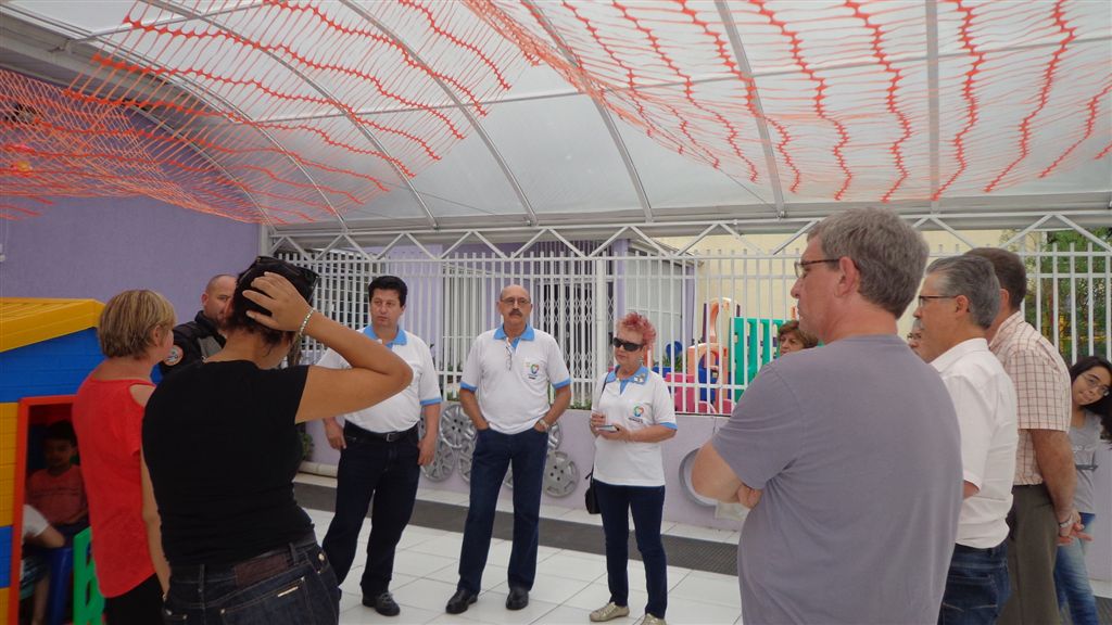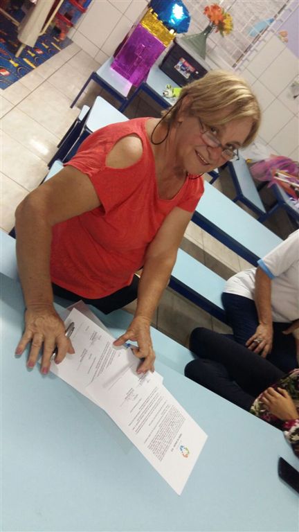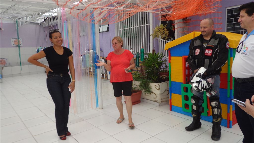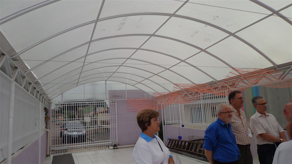 No dia da entrega, o Grupo Solidário foi Recebido pela Diretora da Escola, Sra. Bernardete Pirkiel, que contou sobre a história da instituição, sobre as atividades oferecidas aos alunos, e da grande importância da cobertura das áreas externas da escola para o conforto e desenvolvimento das crianças atendidas por eles.