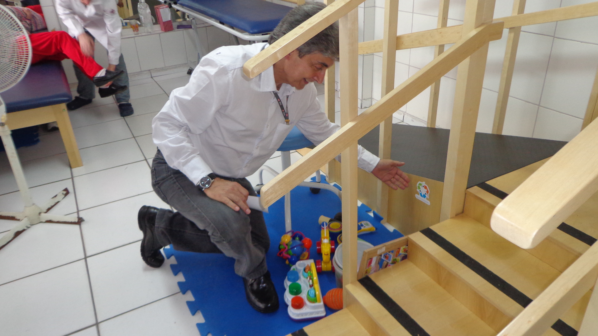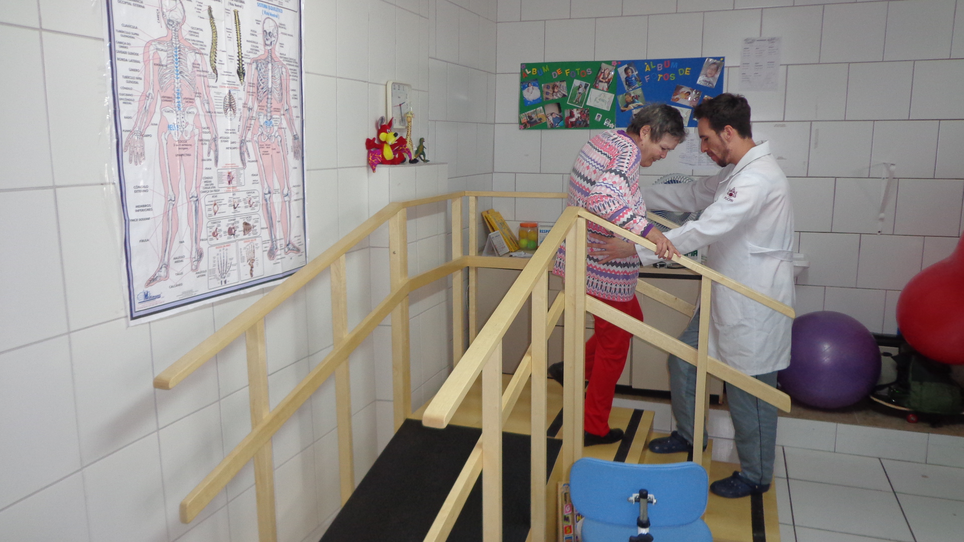 Pois esse brilho nos olhos estava presente nos olhos dos pacientes e familiares que ali estavam sendo atendidos, mas estava, impressionantemente latente, nos olhos do Fisioterapeuta que atendia no local naquele dia. A satisfação, a alegria, o orgulho, e o brilho nos olhos daquele profissional praticamente iluminava todo o ambiente! A felicidade e a empolgação com que ele falava sobre a escada, sobre sua utilização e sobre os progressos que ele poderia dar aos seus pacientes emocionou e fascinou a todos. Parecia uma criança recebendo um brinquedo novo!