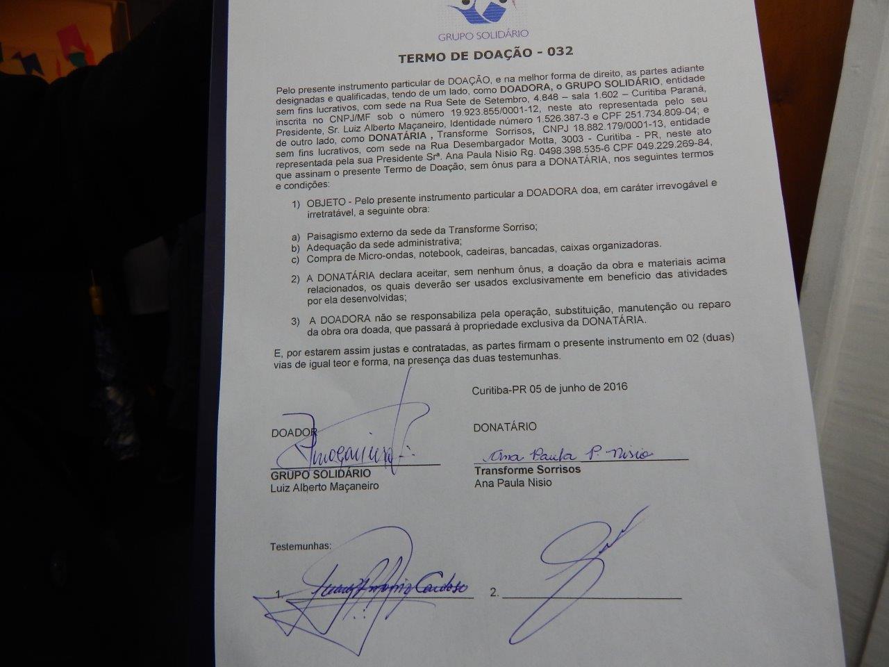 Trata-se de pedido para adequação do espaço da sede da Transforme Sorrisos de forma que possam atender as crianças em seu próprio espaço.