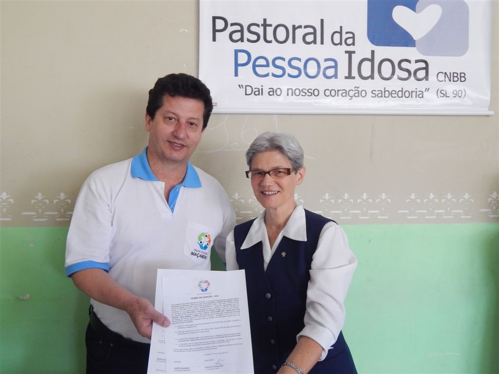 O Grupo Solidário entregou o seu Projeto 033 que compreendeu o apoio financeiro para a compra parcial da cobertura da Sede Nacional da Pastoral da Pessoa Idosa, no valor de R$ 25.000,00