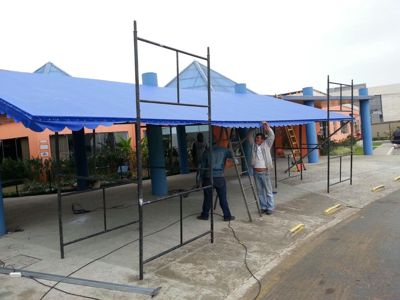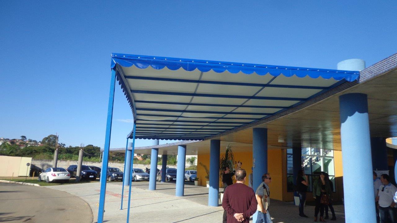 Foi fabricado/instalado um toldo de 9 metros de comprimento por 5 metros de largura possibilitando que o embarque e desembarque dos alunos especiais esteja protegido do sol e da chuva.