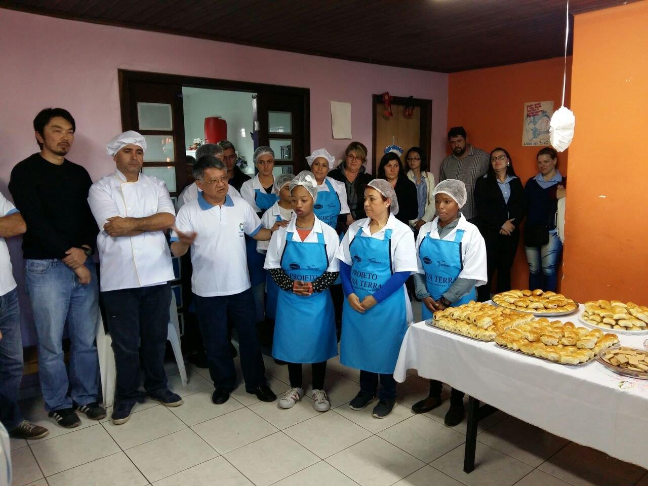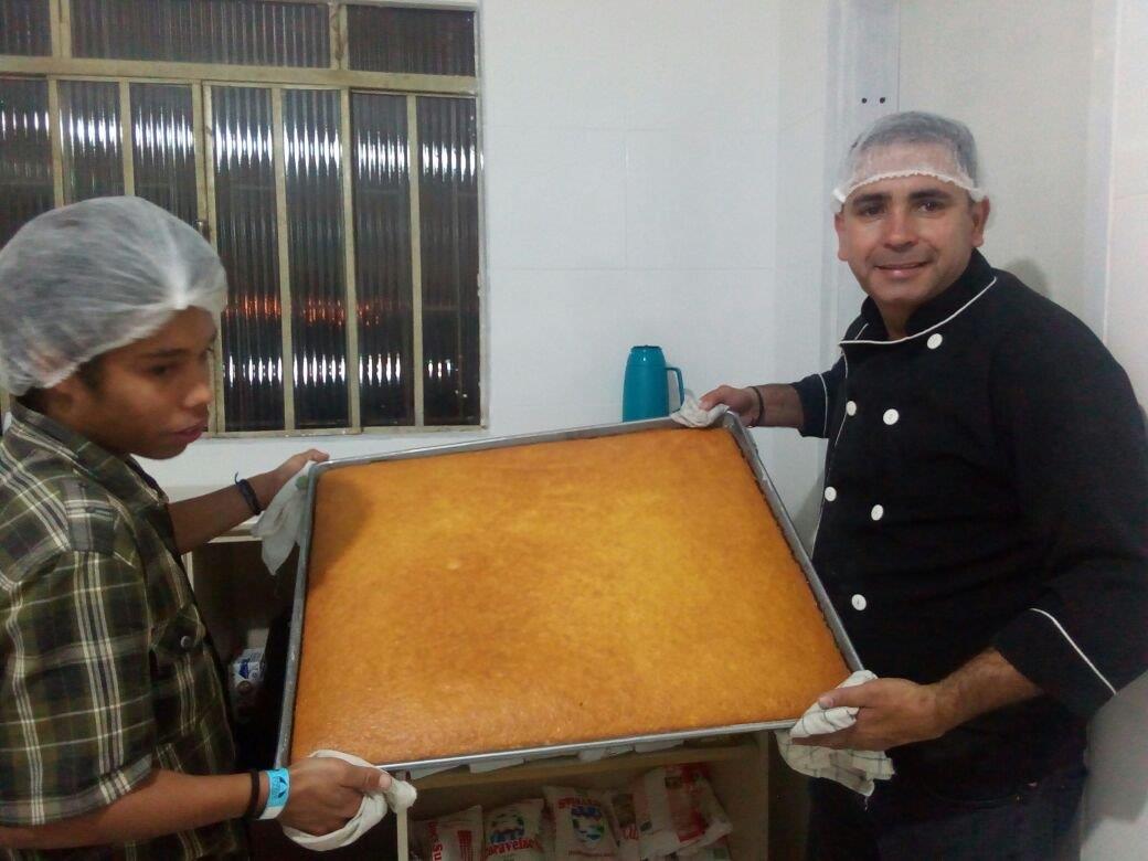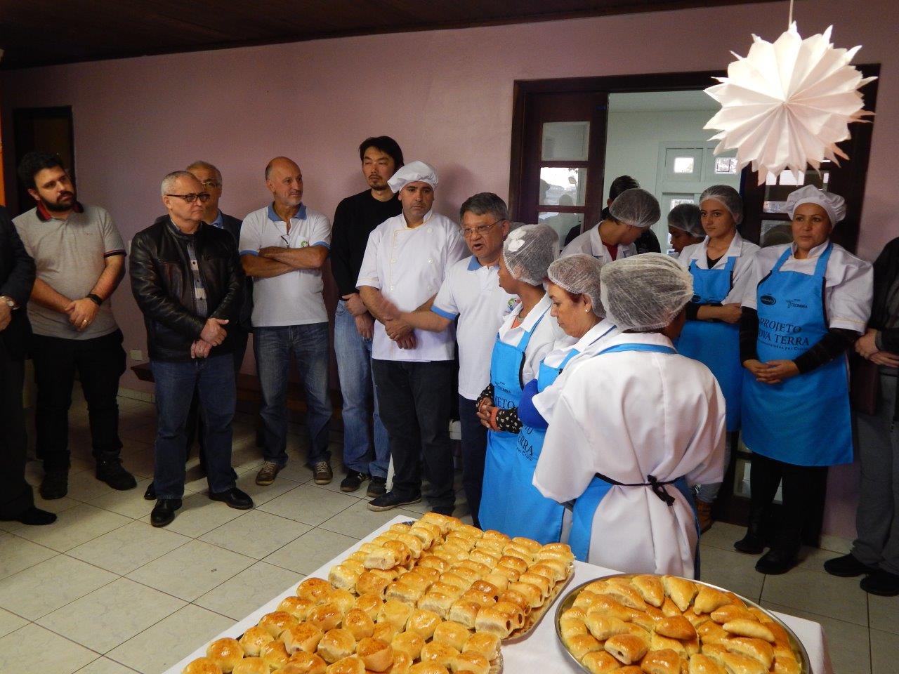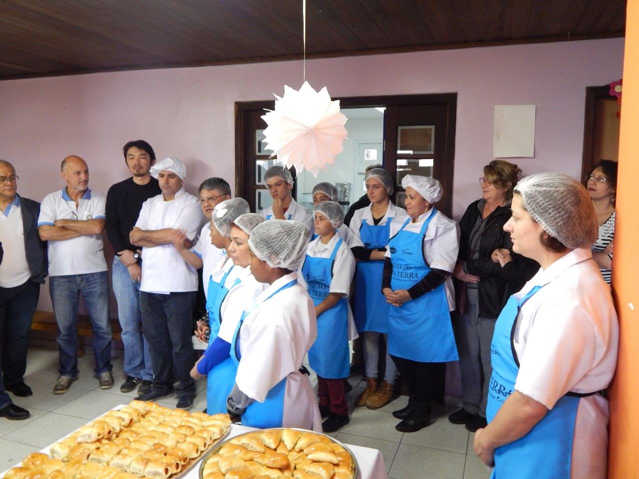 Para receber o Grupo Solidário eles fabricaram pães, bolos, doces já na Padaria recém instalada.
