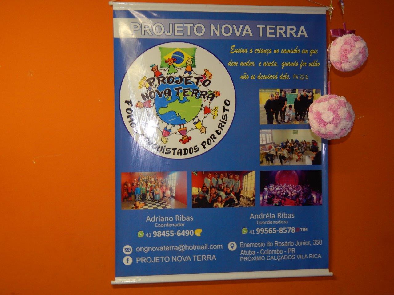 A Associação Beneficente Nova Terra www.facebook.com/ongprojetonovaterra/ (Rua Emenésio do Rosário Junior nº 350 – Colombo - PR), depois de funcionar por seis anos na garagem da casa de seus idealizadores, conseguiu alugar um imóvel para expandir e dar melhores condições de atendimento às crianças e adolescentes e suas famílias.
