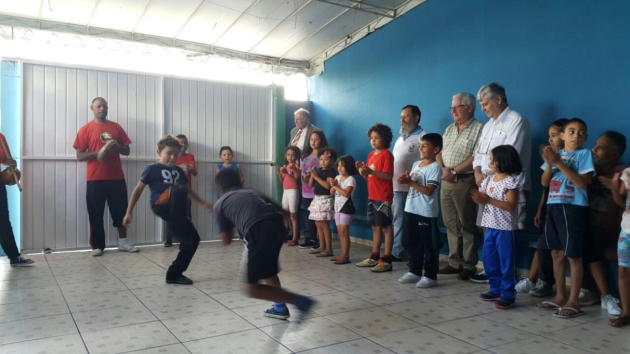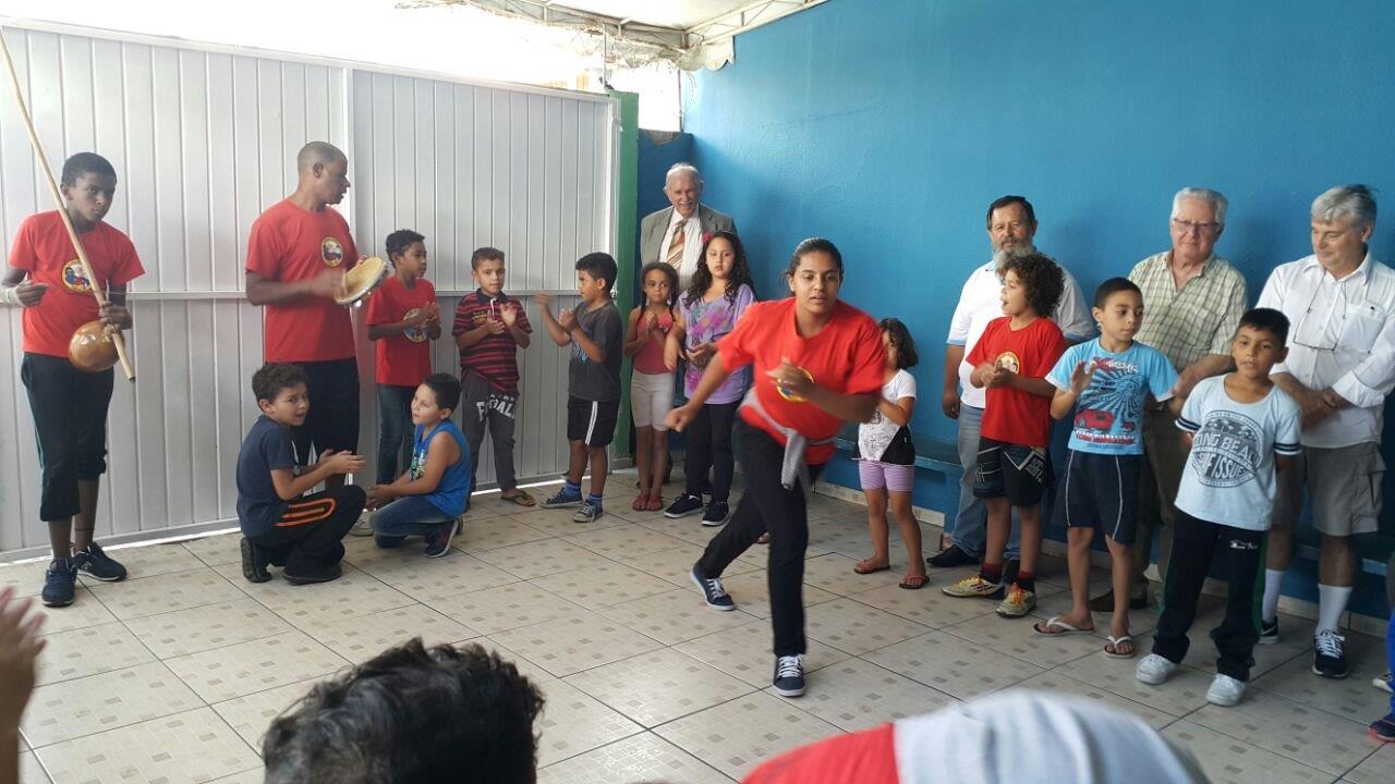 Fomos recebidos pela Srª.. Laurita Coordenadora Interina do Clube e o padrinho do projeto Solidário Claudio Guillen que nos deram as boas vindas e em seguida nos encaminharam para sala de recreação, onde fomos recebidos pelas crianças com um belo cumprimento em coro de “boa tarde sejam bem vindos”, em seguida houve apresentação de algumas atividades desenvolvidas pelas crianças, canto e dança de capoeira, que foi para nós integrantes do grupo Solidário e demais convidados momentos de muita emoção e alegria.