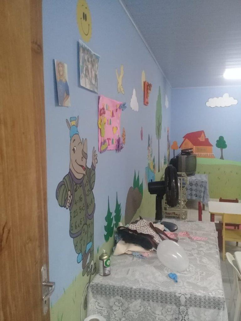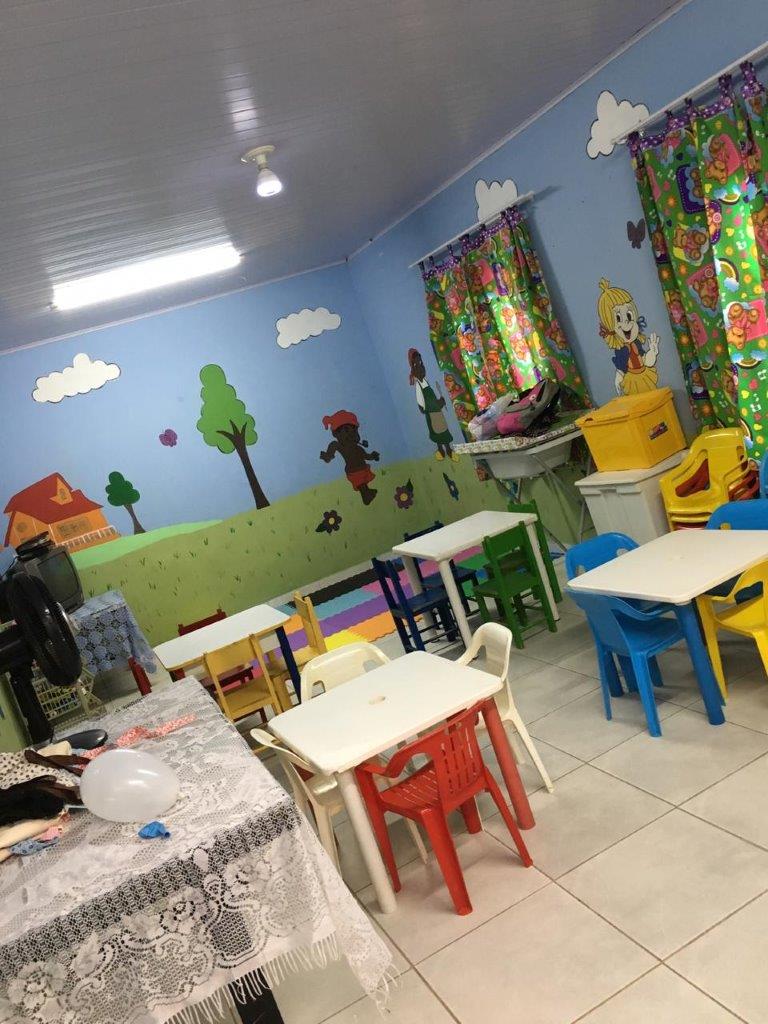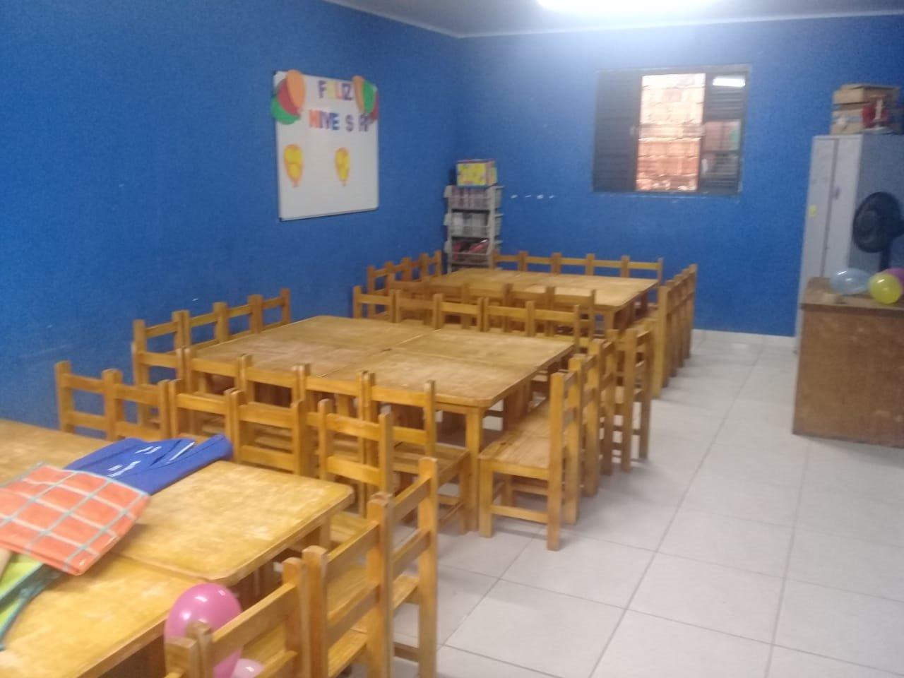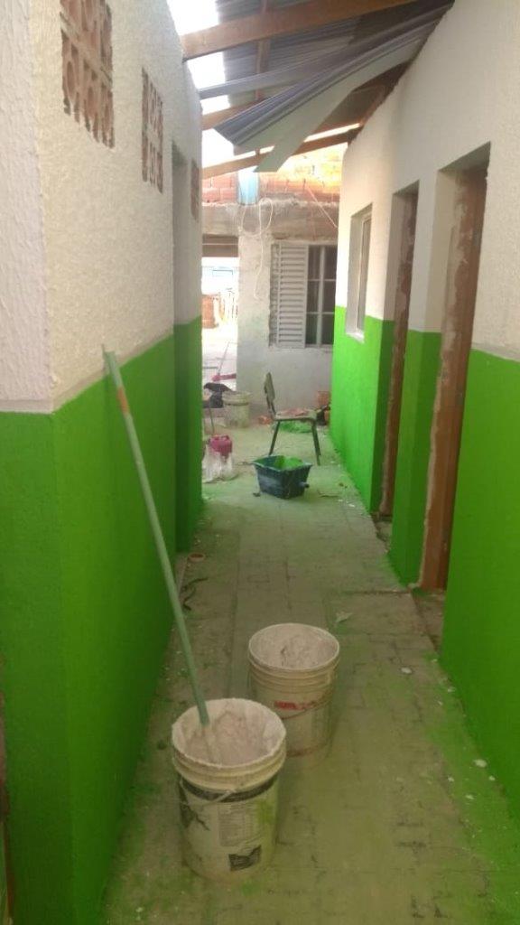 Funcionava na garagem e num espaço em construção, à céu aberto, nos fundos da casa da Edilaine e não comportava mais a quantidade de crianças atendidas além de ser um lugar inóspito em dias de chuva e frio.