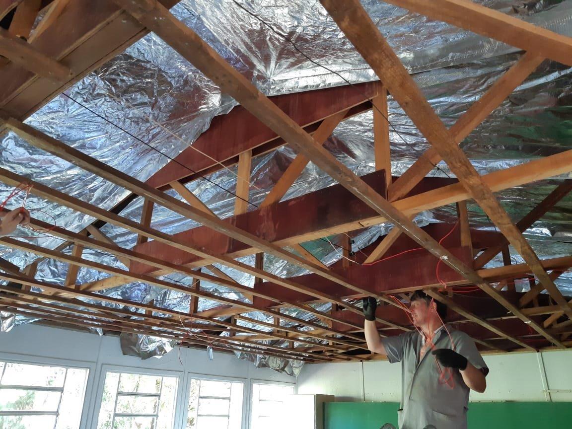 - - Troca do forro da biblioteca e revisão elétrica;