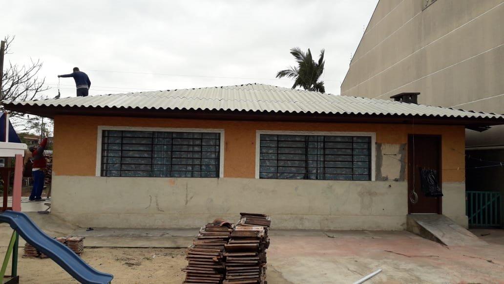 Trocamos o telhado do imóvel no total de 224 m2 possibilitando maior segurança às crianças, familiares, cuidadoras e voluntários.