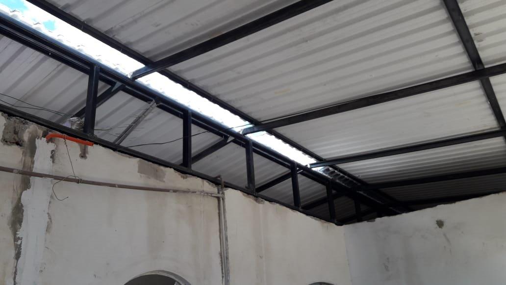 O Grupo Solidário fez a substituição do telhado ( 153 m2 ), tesouras e terças, incluindo a mão de obra.