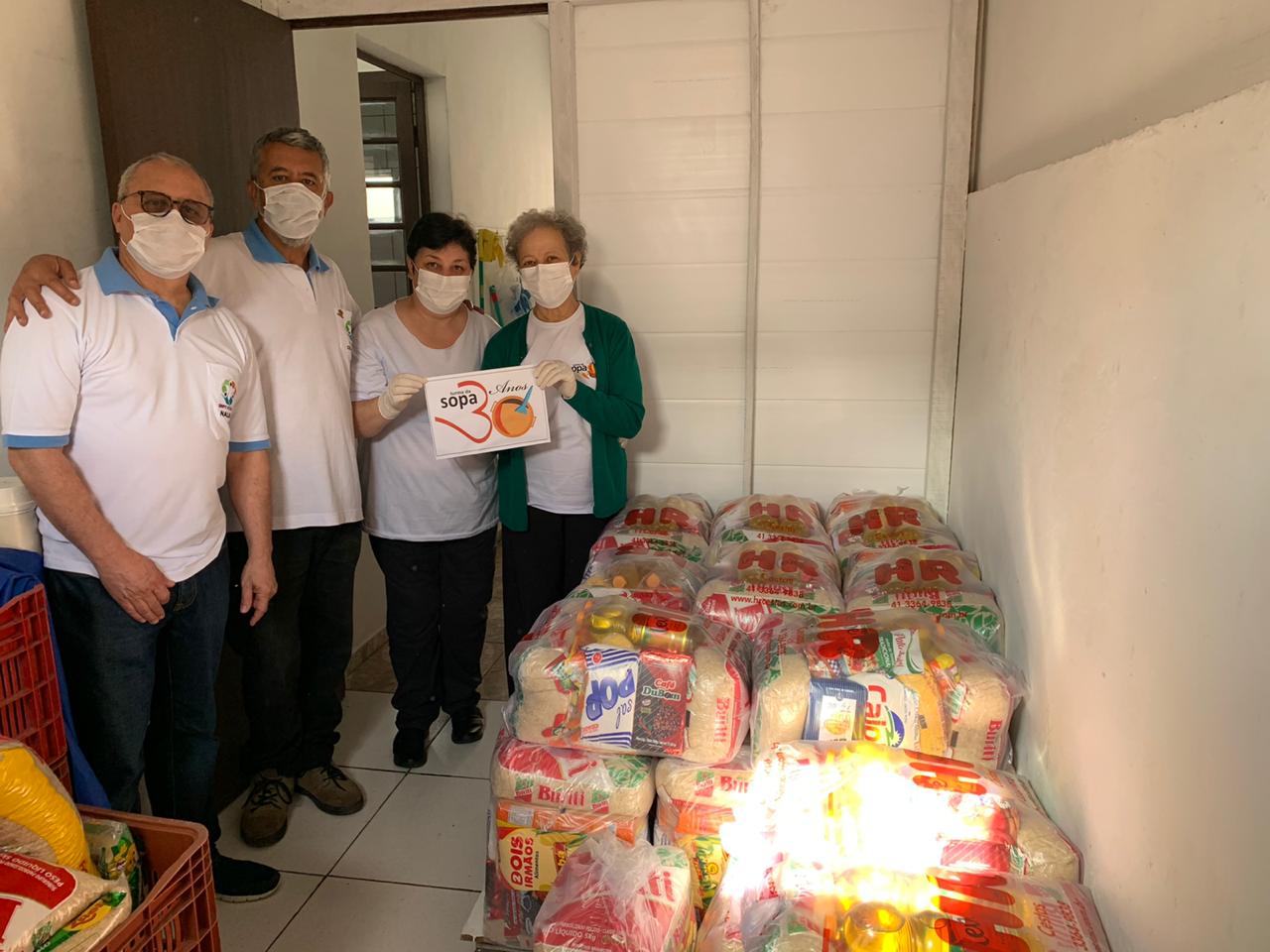 A dificuldade de logística e cuidados com aglomeração de pessoas neste momento nos levou a entregar as 31 cestas básicas de alimentos nesta terça feira 8 de abril para o Proj. 104 – Turma da Sopa.